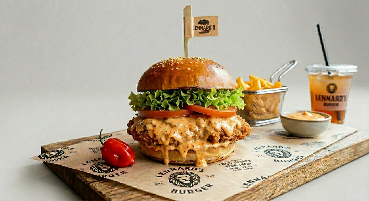 Knusprig paniertes Hühnerfleisch-Patty, Sauce nach Wahl, Jalapeños, frischer Salat und Tomate, feurige Chili-Mayo